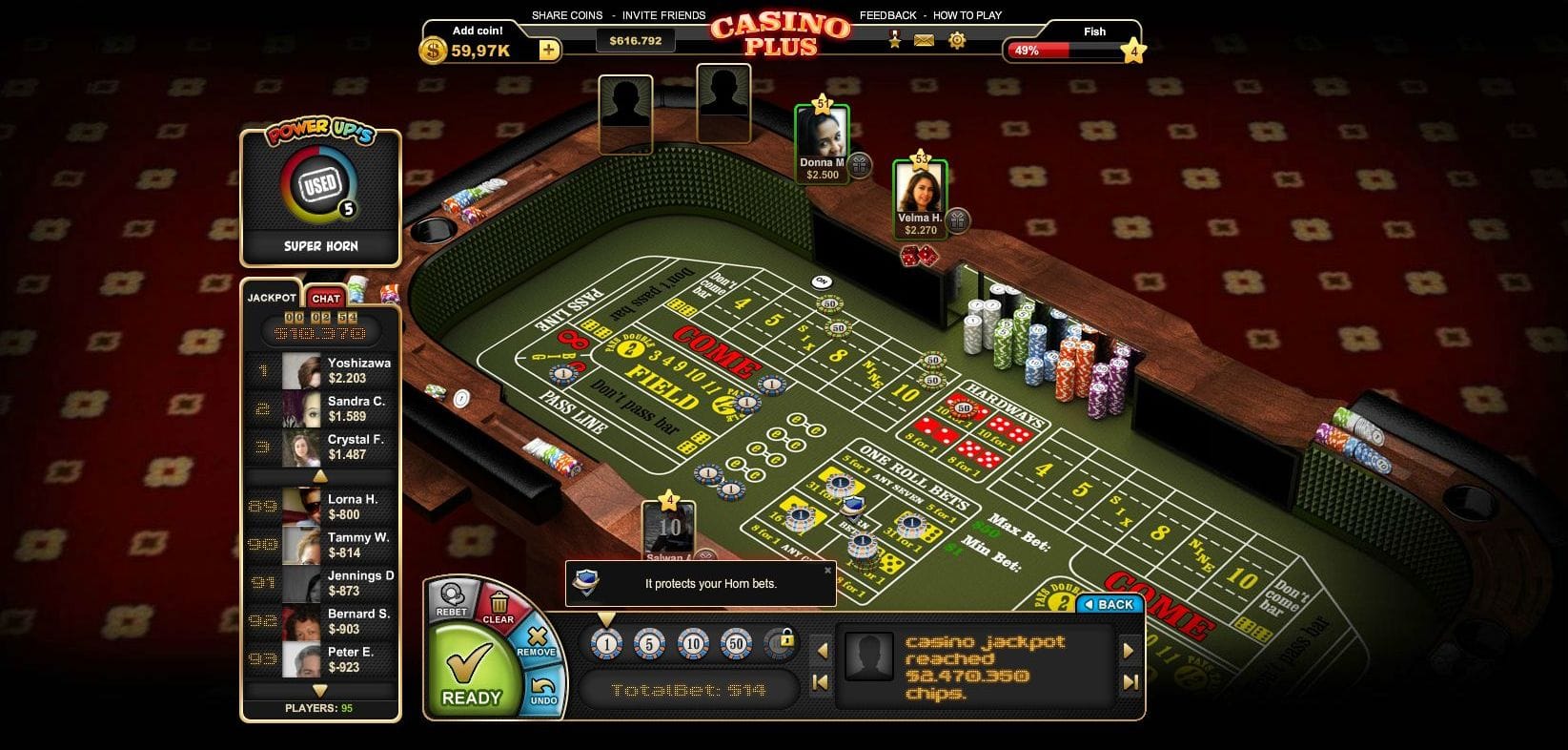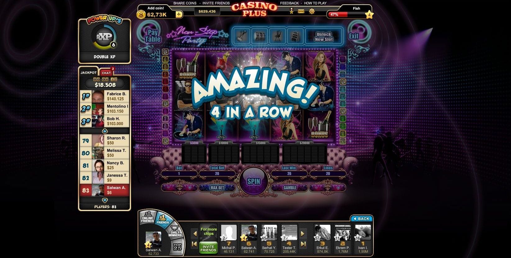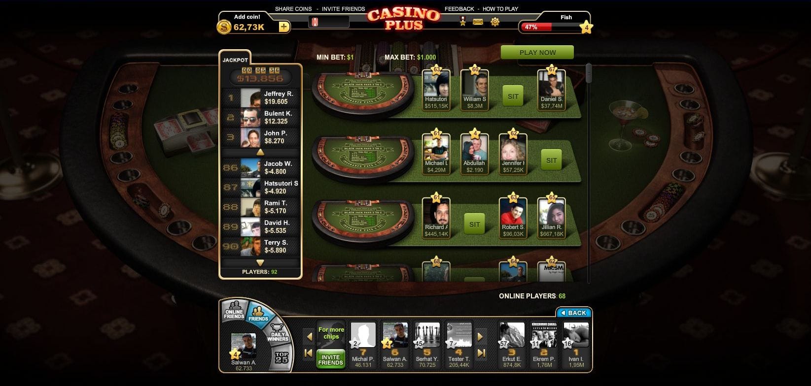 Social casino games are popular among adult casual gamers. Casino Plus is a group of casino games that targets that audience and it's based on in-game virtual money. It includes multiple games each operating as a full game, I was part of a team of 11 developers working at Peak Games bringing the Casino Plus idea to reality.